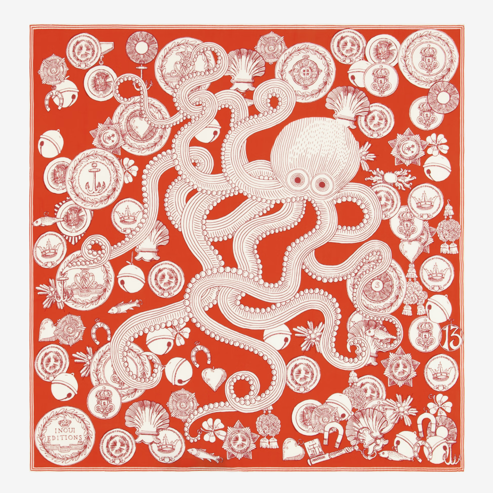 Carré OCTOPUS I Couleur Rouge , 65x65cm.